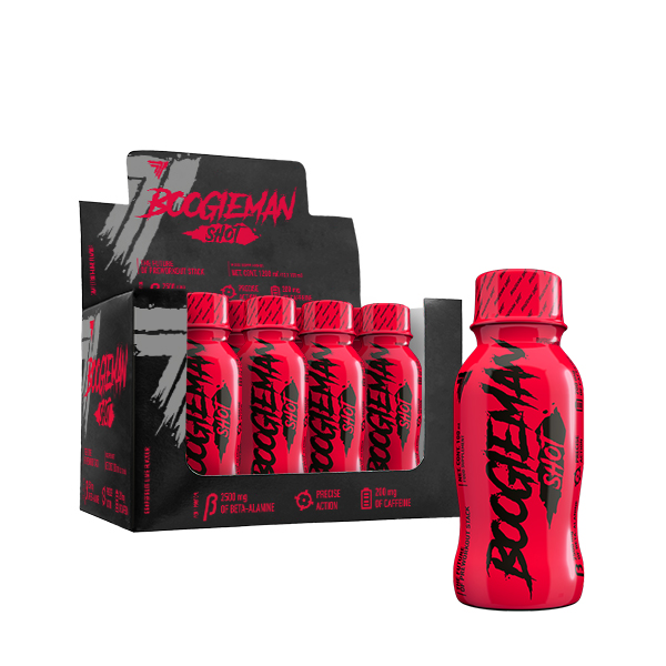 Boogieman Shot è una pratica monodose da utilizzare prima dell’allenamento, un best seller tra i preworkouts. Ideale per gli sportivi adulti, studiato per offrire la massima stimolazione, e fornire tutto ciò di cui il corpo ha bisogno per l’allenamento più intenso. A base di Arginina, Citrullina e Beta Alanina. Boogieman shot è arricchito con Taurina e Caffeina.